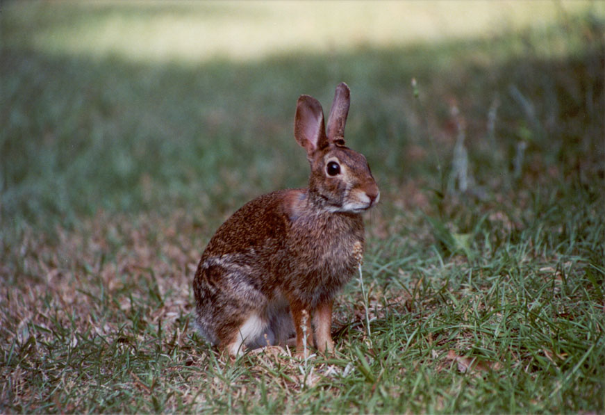 Sylvilagus floridanus - This is the same rabbit as in the above photo. In this picture, you can see the white underside of the rabbit's tail that gives it its name.